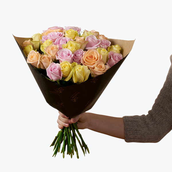 Roser er og blir en sikker vinner! 30 flotte roser i vakre pasteller, gavepakket og levert på døren til den du vil sende en blomstrende omtanke.